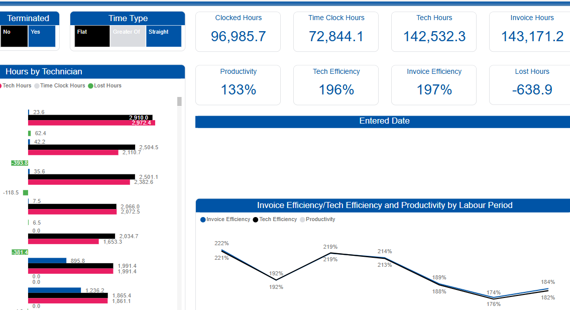 Technician Productivity Report: We have resolved an issue where a work order date that shows far into the future caused the Entered Date visual to fail. Now the date will show properly and as expected.