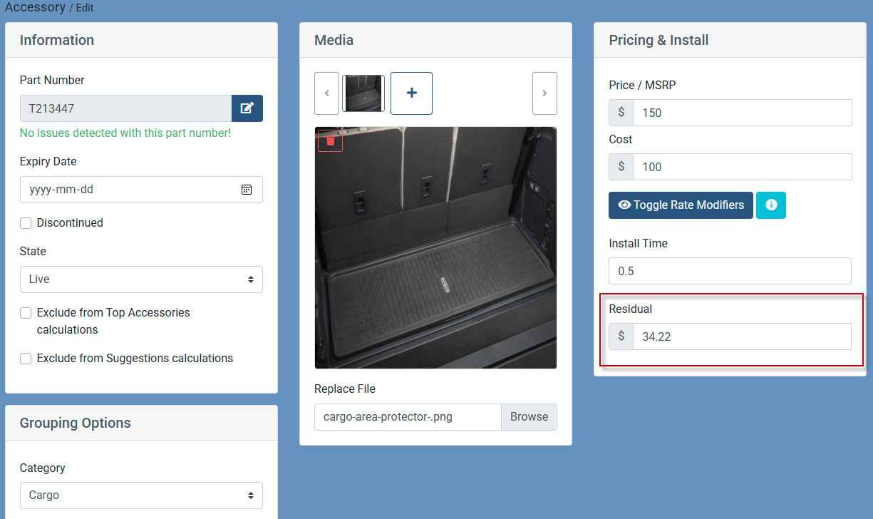 Residual Field for Dealer-Level Custom Accessories & Custom Packages: Our Residual field functionality is getting even better! Previously, residual values could only be set for OEM accessories by the data team. Now, Dealers can also add Residual values for their own custom accessories and custom packages directly at the Dealer level.